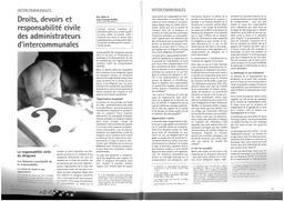 Droits, devoirs et responsabilité civile des administrateurs d'intercommunales
