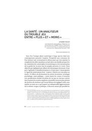 La santé : un analyseur du trouble jeu entre "plus" et "moins"