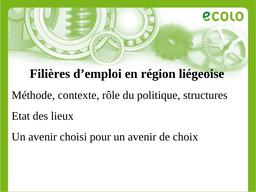 Etudes et propositions pour un avenir choisi: pistes VERTES pour le développement de filières et secteurs d'emplois d'avenir en région liégeoise