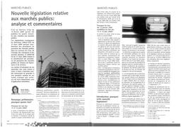 Nouvelle législation relative aux marchés publics : analyse et commentaires