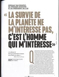 Herman Van Rompuy, ex-premier ministre et ex-président de l'UE "La survie de la planète ne m'intéresse pas, c'est l'homme qui m'intéresse"