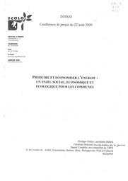 Produire et économiser l'énergie : un enjeu social, économique et écologique pour les comm...