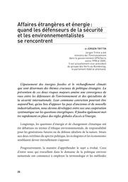 Affaires étrangères et énergie : quand les défenseurs de la sécurité et les environnementalistes se rencontrent