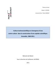 Culture technoscientifique et émergence d’une contre-culture dans la construction d’une capitale scientifique. Grenoble, 1960-2011