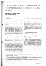 Quel avenir pour les implantations commerciales au regard de la Directive "services" et de la régionalisation?