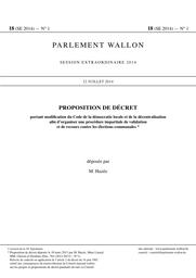 Proposition de décret portant modification du Code de la démocratie locale et de la décentralisation afin d'organiser une procédure impartiale de validation et de recours contre les élections communales