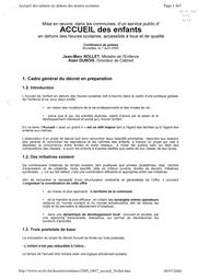 Mise en oeuvre, dans les communes, d'un service public d'accueil des enfants en dehors des heures scolaires, accessible à tous et de qualité.