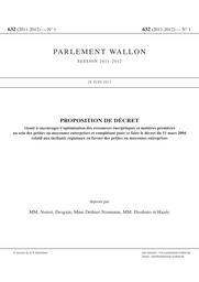 Proposition de décret encouragent l'optimisation des ressources énergétiques et matières premières au sein des petites et moyennes entreprises et complétant pour ce faire, le décret du 11 mars 2004 relatif aux incitants régionaux en faveur des petites ou moyennes entreprises