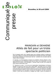 Communiqué de presse | Huytebroeck Evelyne | 28/04/2004