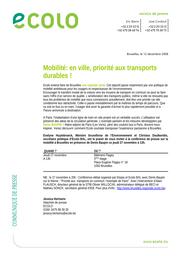 Communiqué de presse | Baupin Denis | Huytebroeck Evelyne | Doulkeridis Christos | Ecolo. Service presse (PA) | 27/11/2008