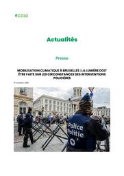Mobilisation climatique à Bruxelles : la lumière doit être faite sur les circonstances des interventions policières